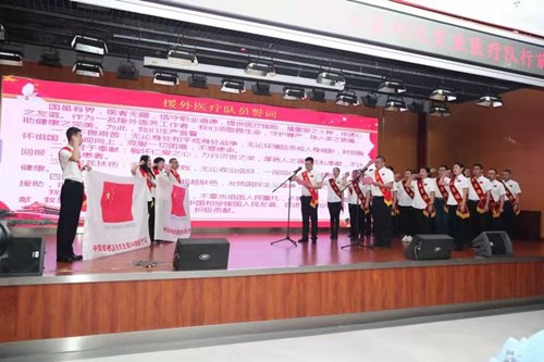 全體隊員面向隊旗進(jìn)行莊嚴(yán)宣誓,鄭重承諾將牢記援外醫(yī)療光榮使命,不辜負(fù)祖國人民重托,發(fā)揚(yáng)“不畏艱苦、甘于奉獻(xiàn)、救死扶傷、大愛無疆”的中國醫(yī)療隊精神,為增進(jìn)中國和受援國人民友誼、促進(jìn)世界和平做出積極貢獻(xiàn)。