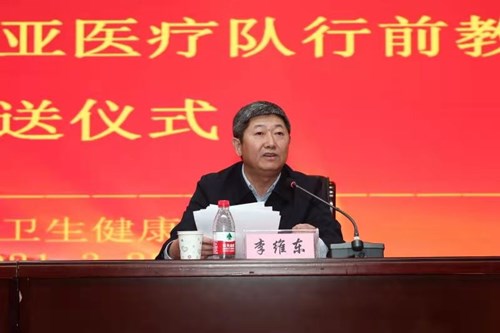 黑龍江省衛(wèi)生健康委黨組成員、副主任李維東作動員講話并為醫(yī)療隊授旗。他要求全體隊員深入貫徹新時代黨的建設(shè)總體工作要求,把“不忘初心、牢記使命”作為持續(xù)加強(qiáng)黨的建設(shè)的永恒課題和黨員干部的終身課題。務(wù)必高度重視疫情防控,做到人物并防、多病同防,疫情防控必須慎終如始,要傳遞好中國抗疫經(jīng)驗(yàn),落實(shí)好對口醫(yī)院合作機(jī)制,推進(jìn)援助項(xiàng)目創(chuàng)新。并以身邊的抗疫英雄為榜樣,秉承援外醫(yī)療優(yōu)良傳統(tǒng)、弘揚(yáng)偉大抗疫精神。