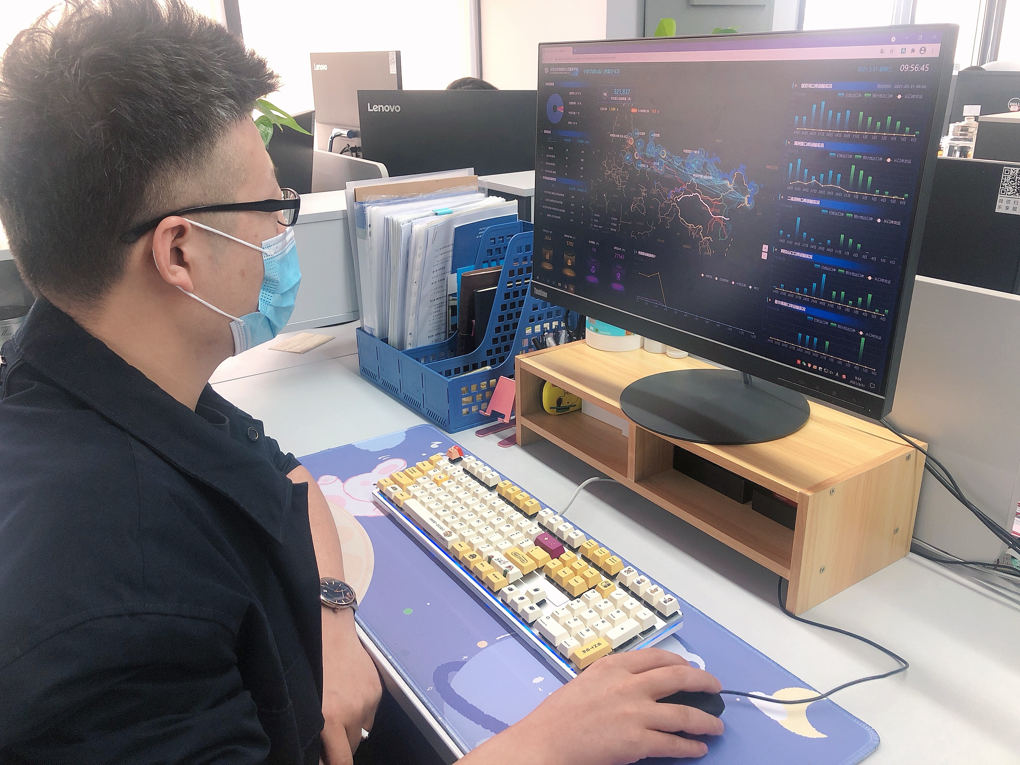 俄運通大數(shù)據(jù)事業(yè)部工作人員線上實時監(jiān)控貨物位置和軌跡信息