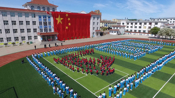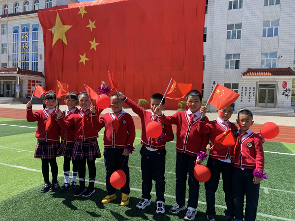 童心永向黨、歡歌慶六一,呼瑪縣第一小學的操場上,由全校600余名師生共同組成黨徽、100的造型圖案,在四層樓高的巨幅國旗映襯下,蔚為壯觀,一面面小紅旗在學生們手中揮舞,師生們懷著崇敬的心情,共同演唱《沒有共產黨就沒有新中國》。氣勢磅礴的開場節(jié)目,表達了呼瑪縣廣大師生學黨史、頌黨恩、跟黨走,隆重慶祝建黨100周年的激動心情。