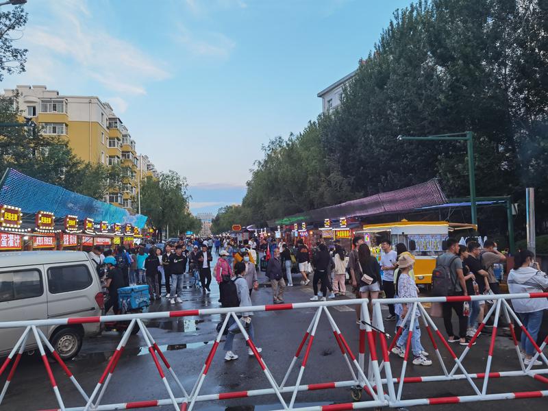 “市場(chǎng)現(xiàn)在有189個(gè)攤車,每車全年12個(gè)月收費(fèi)是9000多元,平均到每天收費(fèi)是40多元?!蓖跆┯钍沁@個(gè)市場(chǎng)的管理者之一,他說(shuō)這個(gè)夜市建設(shè)之初就有比照南方大城市標(biāo)準(zhǔn),最大程度地降低了對(duì)周邊環(huán)境的不良影響?!氨热纾覀?cè)?8中附近租建了停車場(chǎng),白天攤車都集中在了那里;每晚會(huì)有4到6名保安維持秩序;后半夜會(huì)進(jìn)行衛(wèi)生清理,保證第二天的街面衛(wèi)生環(huán)境。”
