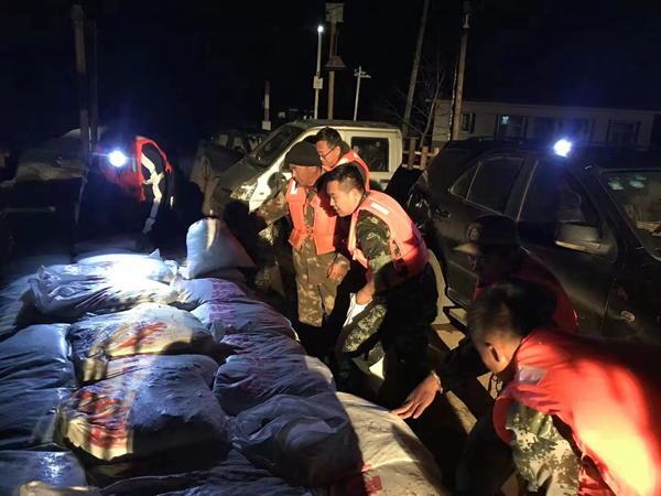 由呼瑪縣防汛抗旱指揮部組織的全縣500百余名黨員干部職工組成的應急搶險隊伍,在河南堤防加高筑堤,用沙包筑起防水壩,用一天的時間提高了呼瑪河南堤防的防汛能力。