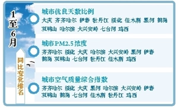 黑龍江日?qǐng)?bào)12日訊(黑龍江日?qǐng)?bào)全媒體見習(xí)記者唐海兵 黑龍江日?qǐng)?bào)全媒體記者吳玉璽)12日,記者從省生態(tài)環(huán)境廳獲悉,全省1至6月平均優(yōu)良天數(shù)為164天,優(yōu)良天數(shù)比例為90.9%,同比升高2.5%。