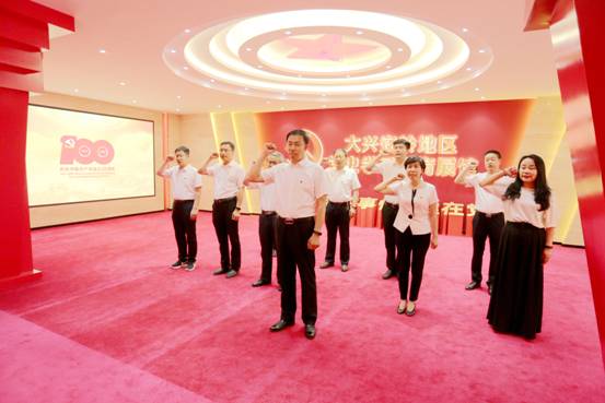 在地區(qū)黨史學習教育展館,面對鮮紅的黨旗,由區(qū)委書記王顯志領誓,區(qū)委理論學習中心組成員集體宣誓,重溫入黨誓詞,砥礪前進初心,勇?lián)氊熓姑?/span>