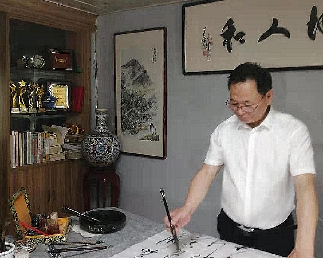 他每年向社會團(tuán)體贈送書法作品百幅,內(nèi)容健康,有古詩詞、五字言、七字言、有毛澤東詩詞等,為弘揚(yáng)民族文化精神而努力。