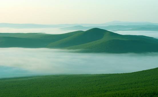 黑河地處大興安嶺東端,小興安嶺北部,境內群山連綿起伏,溝谷縱橫,地貌特征豐富:低山、丘陵、火山熔巖臺地、盆地、平原和河谷不一而足,就像一曲森林小夜曲,節(jié)奏自由、表現(xiàn)手法豐富,極富浪漫主義色彩。