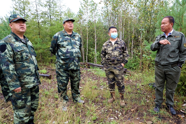林業(yè)局黨委書記胡守慶(左二)深入檢查指導(dǎo)改造管護站安全施工工作。
