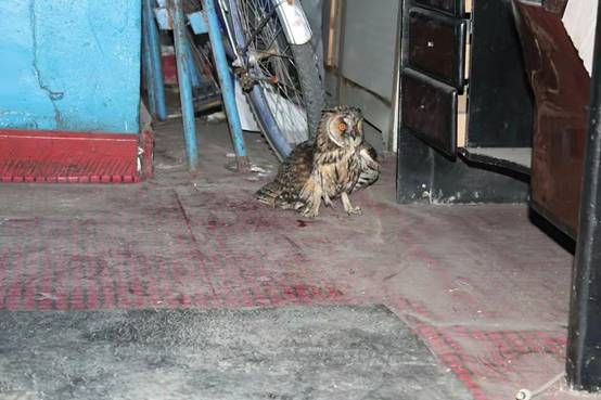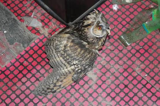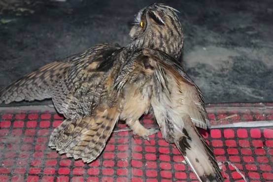 經確認,受傷的大鳥學名“長耳鸮”,鴟鸮科耳鸮屬鳥類。其耳羽簇長,位于頭頂兩側,豎直如耳。面盤顯著,棕黃色,皺翎完整,白色而綴有黑褐色。上體棕黃色,而密雜以粗著的黑褐色羽干紋;頦白色,其余下體棕白色而具粗著的黑褐色羽干紋。腹以下羽干紋兩側具樹枝狀的橫枝。跗蹠和趾密被棕黃色羽,眼橙紅色。以小鼠、鳥、魚、蛙和昆蟲為食。對于控制鼠害有積極作用,應大力保護。屬于中國國家二級保護動物。