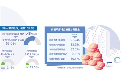 今年前三季度,公募基金整體業(yè)績表現(xiàn)優(yōu)異。金牛理財(cái)網(wǎng)統(tǒng)計(jì)顯示,今年前三季度,納入統(tǒng)計(jì)的主動權(quán)益基金(主動股票基金673只、混合型基金5634只)平均收益率為6.48%,200余只公募開放式基金收益率超過30%,其中,53只基金收益率超過50%,22只基金收益率超過60%,14只基金收益率逾70%。