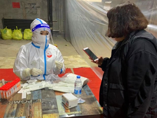 10月30日下午17時,畢贏接到單位領(lǐng)導(dǎo)的通知,準(zhǔn)備好支援社區(qū)核酸采集,有可能今晚22點開始,有可能明早8點開始。就這樣,畢贏趕緊通知親戚朋友婚禮暫時取消,馬上要去社區(qū)支援。10月31日早8點,由省醫(yī)院吳丹紅護(hù)士長帶隊,畢贏一行40名護(hù)士下沉到了新香坊鎮(zhèn)社區(qū)為那里的居民進(jìn)行核酸采集支援。就這樣,婚紗面前畢贏毅然決然地選擇了防護(hù)服,和她的戰(zhàn)友們并肩奔赴社區(qū)支援核酸采集,因為她知道疫情過后的婚禮才會更有意義。