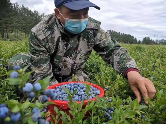 八月份野生藍莓進入成熟期,職工在采摘野生藍莓果(崔紅霞 攝)