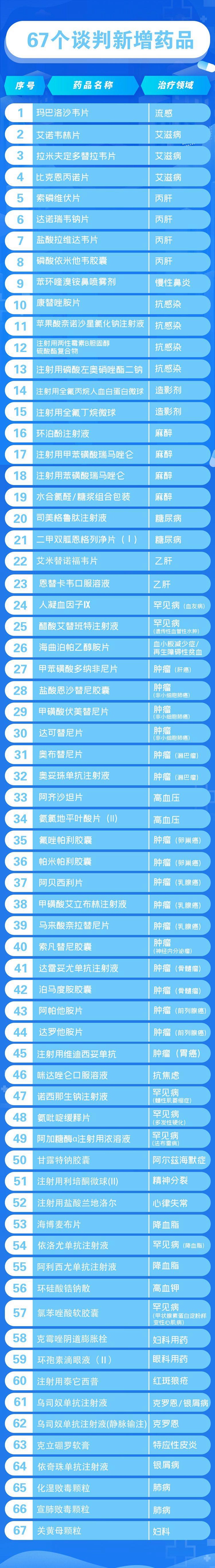 國(guó)家醫(yī)保局3日公布2021年國(guó)家醫(yī)保藥品目錄調(diào)整結(jié)果,本次調(diào)整后,74種新藥進(jìn)入醫(yī)保藥品目錄,11種藥品被調(diào)出目錄,67種目錄外獨(dú)家藥品談判成功,平均降價(jià)61.71%。本次調(diào)整后,最新版國(guó)家醫(yī)保藥品目錄藥品總數(shù)達(dá)2860種。(新華社記者彭韻佳、沐鐵城,海報(bào)設(shè)計(jì)楊軼群)