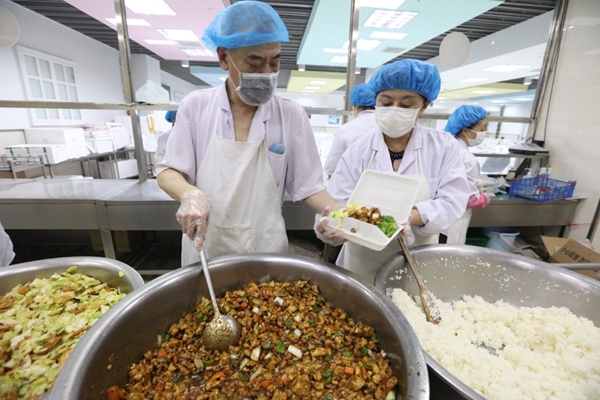消化內(nèi)科16個(gè)月大的患兒浩浩是過敏體質(zhì),因發(fā)熱、腹瀉、進(jìn)食后嘔吐住院治療,這個(gè)孩子既往過敏原檢查對(duì)大米、西紅柿、雞蛋等多種食物過敏,所以食堂針對(duì)這個(gè)孩子飲食單獨(dú)配餐,主食以小麥類饅頭等為主,蔬菜以在家經(jīng)常食用的菜類制作,保證患兒的營養(yǎng)進(jìn)食。據(jù)了解,哈爾濱醫(yī)科大學(xué)附屬哈爾濱兒童醫(yī)院全力保障300多名住院患兒以及陪護(hù)家屬的一日三餐飲食。每天患兒家長(zhǎng)通過住院患者訂餐系統(tǒng)平臺(tái)網(wǎng)上自助訂餐,食堂配餐送到病房。鞠樹斌介紹,食堂每天負(fù)責(zé)醫(yī)院職工和患者及陪護(hù)家屬800多人次的一日三餐,在崗的25名工作人員,每天從3時(shí)開始準(zhǔn)備早餐,8時(shí)制作午餐,14時(shí)又開始做晚餐。工作雖然忙碌,但卻覺得自己的努力能讓患者們?cè)谧≡浩陂g吃得安心、舒心,又覺得自己價(jià)值感滿滿。