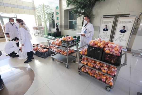 黑龍江經(jīng)濟(jì)網(wǎng)訊(魏然 李麗 祝東 梁新立) 12月7日,在哈爾濱醫(yī)科大學(xué)附屬哈爾濱兒童醫(yī)院,30箱總重700多斤的蘋果和桔子,被一箱箱運(yùn)進(jìn)住院處病房,由行政后勤人員送到每個(gè)病房患兒家庭手中,讓在院的孩子們補(bǔ)充營養(yǎng)。