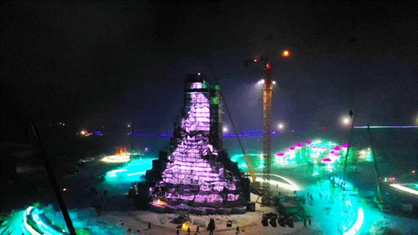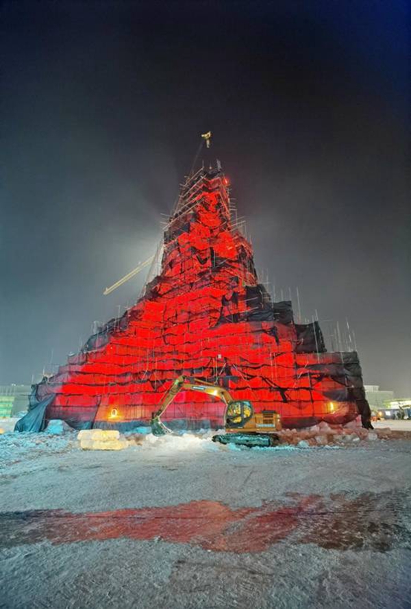 規(guī)模最大的冰景建筑“圣火之巔”完工,標(biāo)志著第二十三屆哈爾濱冰雪大世界開園進入了倒計時階段。園區(qū)內(nèi)其他冰雪景觀正在緊張施工中,一個流光溢彩、炫麗耀眼的冰雪樂園,即將呈現(xiàn)在世人面前。