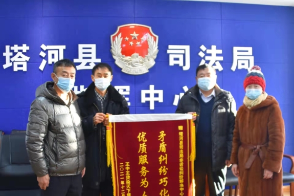 黑龍江經(jīng)濟(jì)網(wǎng)訊(吳慶勇 周楠)近日,塔河縣氣溫驟降,居民徐麗莉、田桂龍夫妻不顧寒冷,滿懷感恩的心將“矛盾糾紛巧化解,優(yōu)質(zhì)高效為人民”的錦旗送到塔河縣司法局,表達(dá)對塔河縣司法局非訴訟糾紛解決中心公正、高效為民解憂的感謝之情。