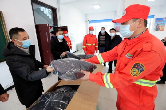 在森林消防大隊一樓活動室,司勇、張志良親切地與大隊干部職工交流談心,詳細(xì)了解森防隊員們的工作生活情況以及思想狀況,對他們“舍小家為大家”的敬業(yè)精神表示感謝,并逐一為隊員們分發(fā)了防寒羽絨服。“衣服大小合不合適,穿在身上暖不暖和……”深切話語讓森防隊員們備感關(guān)懷,備受鼓舞,喜悅之情溢于言表。
