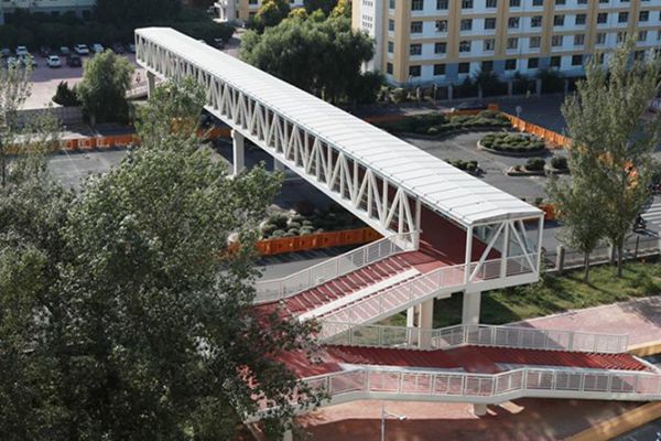 2021年秋季學(xué)期開(kāi)學(xué)初,一座跨度最大、設(shè)計(jì)美觀(guān)的人行天橋?qū)⒐枮I理工大學(xué)南區(qū)征儀路兩側(cè)的校園連接在一起。哈爾濱理工大學(xué)以聚焦民生集中發(fā)力,與市政部門(mén)積極溝通并由市政府出資1300余萬(wàn)元,建設(shè)了全長(zhǎng)85.5米,寬5米,橫跨征儀路的理工南區(qū)過(guò)街天橋。天橋的建成不僅解決了師生出行安全和防疫隱患,更為學(xué)生上課、就餐提供了十分便利通行條件,天橋設(shè)計(jì)美觀(guān)、通行便捷,一落成就成為了冰城“最美天橋”和理工校園“網(wǎng)紅”打卡地。