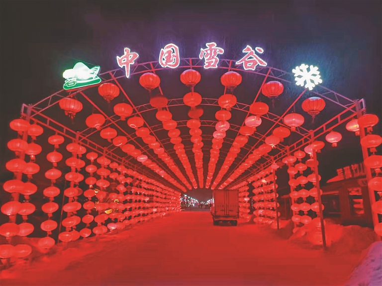 雪谷中心街道上,聳立著由上千只大紅燈籠排列組合的拱形門(mén)。