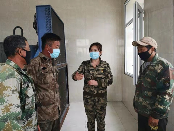 劉海玲(右二)指導(dǎo)企業(yè)員工學(xué)習(xí)飼養(yǎng)技術(shù)(圖片由受訪(fǎng)者提供)