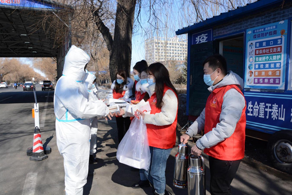 樺川縣稅務(wù)局組成青年志愿服務(wù)隊,攜帶保溫杯、熱水、水果等慰問品,深入樺川縣入口防疫卡點,慰問堅守在疫情防控一線的工作人員。青年志愿者們詳細詢問卡點防寒保暖、飲食安排等情況,對他們舍小家為大家、無私奉獻、敢于擔當?shù)木窠o予高度贊揚,向他們送去關(guān)心和問候,叮囑他們做好自身防護,合理安排休息時間。