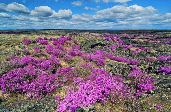 另一獨(dú)具北國(guó)風(fēng)光特色的是“興安杜鵑”,又稱“映山紅”“達(dá)子香”“達(dá)達(dá)香”,粉紅色的花朵與純白色的雪山是黑龍江高山叢林之間的春季奇景。其中,在牡丹江鏡泊湖景區(qū)及周邊熔巖臺(tái)地盛開(kāi)的杜鵑花,林在石上、石在花中、花在石上,石海、花海、林海形成罕見(jiàn)的自然奇觀。此外,齊齊哈爾龍江縣的杜鵑山景區(qū)、以興安杜鵑為市花的伊春小興安嶺、雙鴨山的大頂子山、黑河的錦河大峽谷、大興安嶺的百泉谷生態(tài)旅游風(fēng)景區(qū)等地,都可以探尋到興安杜鵑的芳蹤。