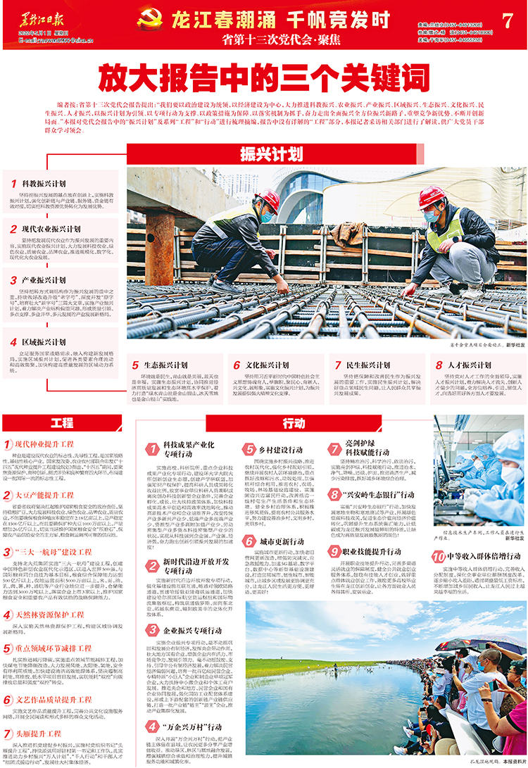 編者按:省第十三次黨代會(huì)報(bào)告提出:“我們要以政治建設(shè)為統(tǒng)領(lǐng),以經(jīng)濟(jì)建設(shè)為中心,大力推進(jìn)科教振興、農(nóng)業(yè)振興、產(chǎn)業(yè)振興、區(qū)域振興、生態(tài)振興、文化振興、民生振興、人才振興,以振興計(jì)劃為引領(lǐng)、以專項(xiàng)行動(dòng)為支撐、以政策措施為保障、以落實(shí)機(jī)制為抓手,奮力走出全面振興全方位振興新路子,重塑競(jìng)爭(zhēng)新優(yōu)勢(shì)、不斷開創(chuàng)新局面?!北緢?bào)對(duì)黨代會(huì)報(bào)告中的“振興計(jì)劃”及系列“工程”和“行動(dòng)”進(jìn)行梳理摘編,報(bào)告中沒有詳解的“工程”部分,本報(bào)記者采訪相關(guān)部門進(jìn)行了解讀,供廣大黨員干部群眾學(xué)習(xí)領(lǐng)會(huì)。