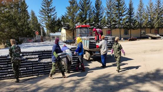在各項條件具備后,苗圃搶抓時間進行輕基質(zhì)杯生產(chǎn)工作和起苗作業(yè),職工們發(fā)揚實干精神,積極投入到生產(chǎn)工作中來,每天生產(chǎn)輕基質(zhì)近1萬杯,并已完成新播落葉松起苗工作。