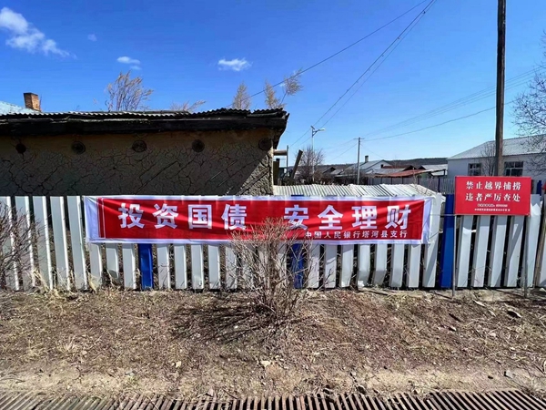 “簽訂協(xié)議+駐村宣傳”。人民銀行塔河縣支行選取離城鎮(zhèn)較遠(yuǎn)且人口居住相對集中的依西肯鄉(xiāng)作為此次“國債下鄉(xiāng)”宣傳點(diǎn)。通過與依西肯鄉(xiāng)人民政府簽訂“國債下鄉(xiāng)”戰(zhàn)略合作協(xié)議,充分發(fā)揮村委貼近民眾的優(yōu)勢,聘任村委干部擔(dān)任國債宣傳員,做好“國債下鄉(xiāng)”的知識(shí)宣傳,建立國債宣傳長效機(jī)制,確保“國債下鄉(xiāng)”惠民便民村村通。