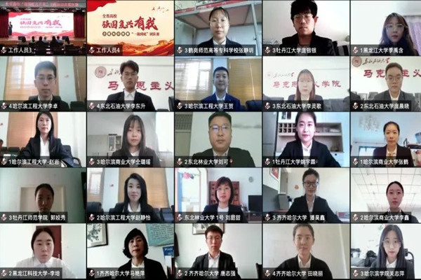 經(jīng)過前期比賽的激烈角逐,哈爾濱工程大學、東北林業(yè)大學、黑龍江大學、哈爾濱商業(yè)大學、佳木斯大學、齊齊哈爾大學、東北石油大學、黑龍江科技大學、牡丹江師范學院、哈爾濱學院、牡丹江大學、鶴崗師范高等專科學校12支高校代表隊共48名師生參加線上決賽——“一戰(zhàn)到底”團隊必答賽。
