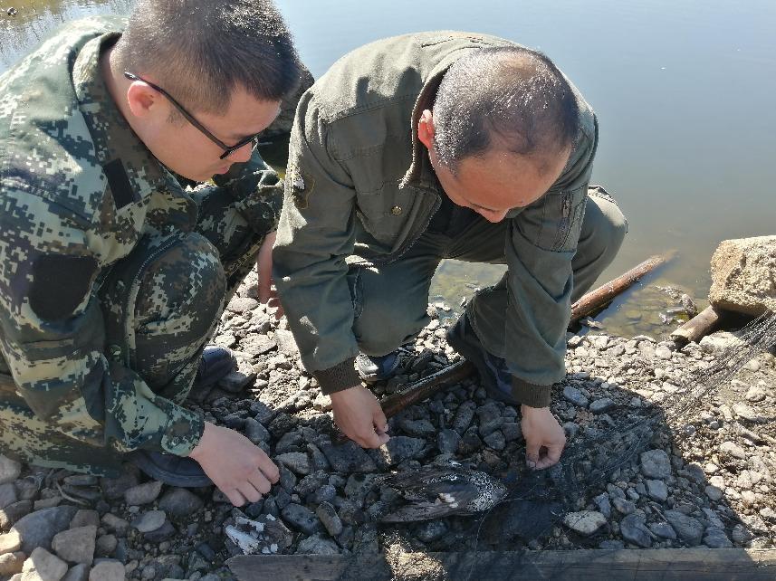 圖強(qiáng)林業(yè)局森林資源管理科工作人員在壯林林場(chǎng)施業(yè)區(qū)檢查工作時(shí),發(fā)現(xiàn)一只綠翅鴨被粘網(wǎng)粘住,資源科工作人員對(duì)其展開營(yíng)救。