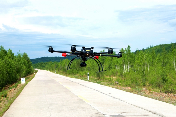 阿木爾林業(yè)局升起六旋翼無人機精準(zhǔn)核查火場情況(王力 攝)