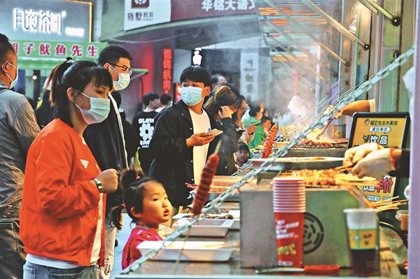 這邊,“向陽情懷”燈光夜市上,誘人的美食香味向過往的人們發(fā)出邀請,啤酒廣場舞臺上樂隊正在為游戲環(huán)節(jié)做預(yù)熱,一場視覺盛宴讓市民又多了一個好去處。那邊,“后備箱集市”讓市井味搭上“文藝風”,城市夜景與燒烤元素碰撞,人潮熙攘,很是熱鬧。