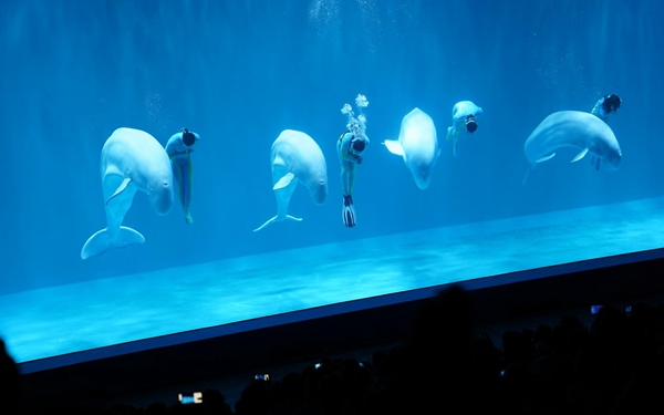 極地公園工作人員介紹,四鯨、四人共同表演難度很大,這樣一場震撼無比的表演,離不開白鯨寶貝們的高智商和高情商,以及白鯨和馴養(yǎng)師朝夕相處的和諧和默契。這場四鯨秀不僅內(nèi)容新,這四只白鯨也是第一次“組團”,它們沒有任何緊張和怯場,超具藝術(shù)家風(fēng)范,最后還不忘集體謝幕,贏得了游客接連不斷的喝彩和掌聲。為了打造世界最好的白鯨表演,哈爾濱極地公園的白鯨劇場從場館設(shè)計、音樂編排、燈光音響設(shè)備,到巨型展窗等均做到國內(nèi)頂級,只為全方位打造世界最好的白鯨秀。