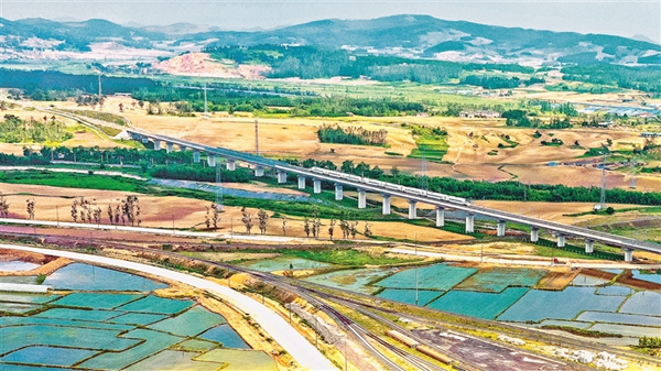 高鐵網(wǎng)將沿線六座城市串成線。原勇 本報記者 狄婕攝