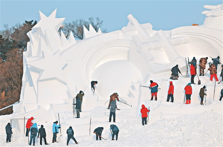 本報(bào)訊(記者 劉艷)記者從哈爾濱市太陽(yáng)島風(fēng)景區(qū)獲悉,13日,第35屆哈爾濱太陽(yáng)島雪博會(huì)大型主塑《逐夢(mèng)》正式開鏟。主塑長(zhǎng)100米,高33米,將由70余位雕刻師用一周左右的時(shí)間完成,用雪量近2.6萬立方米。