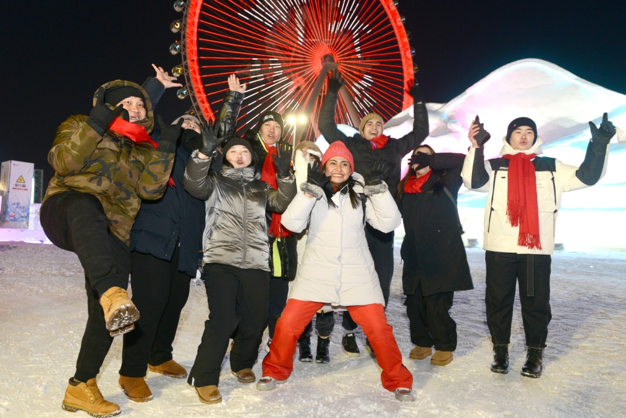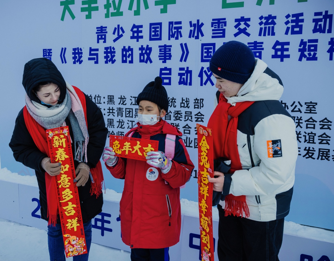 當(dāng)天上午,在雪博會(huì),來(lái)自黑龍江大學(xué)的各國(guó)留學(xué)生代表與中國(guó)青少年結(jié)對(duì)互動(dòng),互贈(zèng)新春禮物,表達(dá)對(duì)即將迎來(lái)的兔年美好祝福。中外青少年小手拉大手,共游太陽(yáng)島雪博會(huì),鯉魚躍龍門、圓夢(mèng)啟程、雪冠博覽等雪雕雪景讓大家流連忘返。世界各國(guó)青少年一起雕刻“宇航員”雪雕,送上春聯(lián)祝福語(yǔ),體驗(yàn)了中國(guó)傳統(tǒng)文化和濃濃的年味,表達(dá)了對(duì)世界文化共融的美好祝愿。