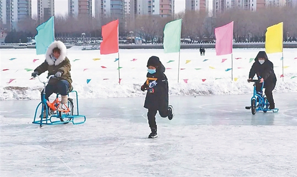 齊齊哈爾市民也紛紛走出家門,玩冰戲雪,重返童年的快樂(lè)時(shí)光 。在齊齊哈爾勞動(dòng)湖面上, 節(jié)日里的鶴城市民在這里玩碰碰球、抽冰嘎、雪地碰碰車,冰爬犁、冰滑梯、狗拉雪橇,到處人頭攢動(dòng),熱火朝天。雪地摩托等冰雪娛樂(lè)項(xiàng)目,讓許多鶴城市民找到了兒時(shí)那份純粹而美好的快樂(lè)。