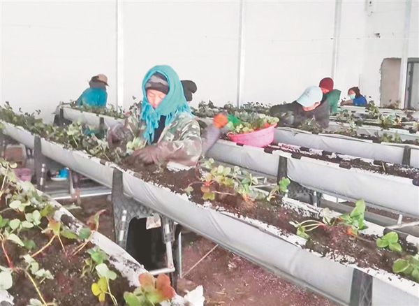 “早上7點去,下午4點多就收工回來了,離家近,每天能賺150元,挺好的?!睆埥鹣阏f。走進產(chǎn)業(yè)園的草莓溫室大棚,如張金香一般來自谷大村的女工們正認真地進行著手中的工作。移栽、覆膜、澆水……14萬株蘊含著期待與希望的草莓秧苗正在茁壯成長。