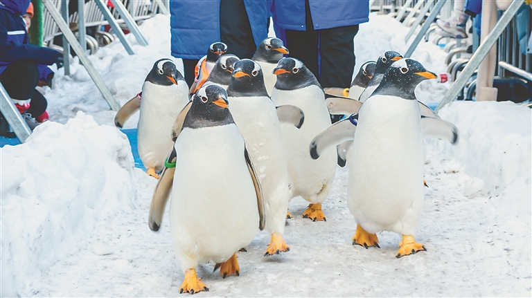 “我們就是專程為‘淘學(xué)企鵝’而來,能在哈爾濱看到全國僅有的企鵝冰雪巡游,真的不虛此行?!痹缭?年前,上海游客孟蕓就通過短視頻看到它們背著小書包打卡黑龍江美景的身影,成為妥妥的“鵝粉”。她說,為了能在前排近距離觀看,她更是早早就來到極地廣場(chǎng)等候。哈爾濱極地公園營銷部經(jīng)理崔美艷說,“淘學(xué)企鵝冰雪巡游”自啟動(dòng)以來,每日引萬人打卡,成為今冬的爆款網(wǎng)紅活動(dòng),吸引全國游客來到哈爾濱看企鵝打卡拍攝,全網(wǎng)曝光量更是在25天的時(shí)間里突破了8.5億。