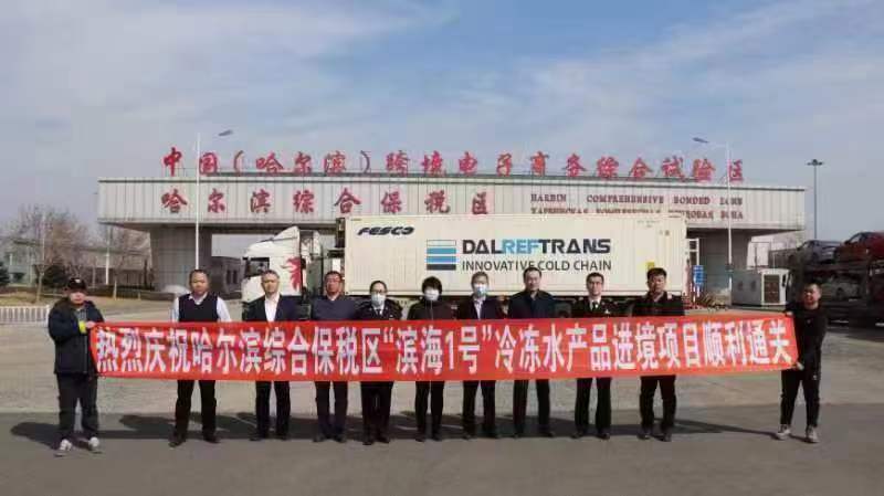 這批貨物由哈俄班列公司購買并承運,在哈爾濱海關及所屬冰城海關、市商務局、綜保區(qū)、香坊區(qū)的大力支持下,成功打通了海參崴——綏芬河——哈爾濱俄羅斯冷凍海產品冷鏈運輸通道,解決了俄方啟運、邊境查驗、綜保區(qū)口岸報關的一系列問題。這一通道的打通,為白令海峽高品質海產品經由俄羅斯進入國內提供了新的陸路物流解決方案,將對海運形成部分替代。