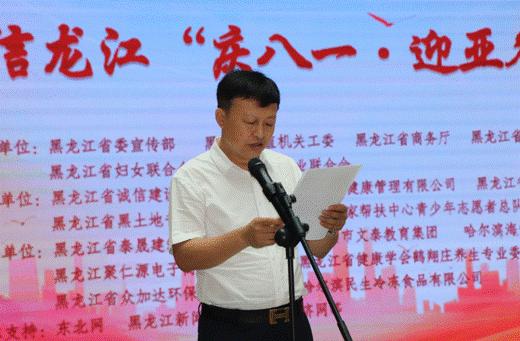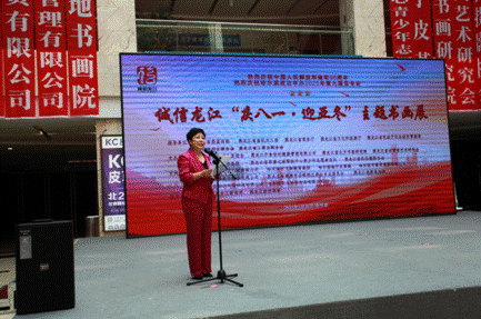 省直機(jī)關(guān)工委行業(yè)協(xié)會商會黨建工作部部長、全省性社會組織黨委專職副書記秦曉明致辭。他表示,相信通過這次活動的舉辦,將進(jìn)一步激勵軍民同心,增強(qiáng)情感認(rèn)同,深化同呼吸、共命運(yùn)、心連心的軍民魚水情,營造擁軍優(yōu)屬、擁政愛民的濃厚社會氛圍。同時(shí),以亞冬會為媒,以書畫展為平臺,充分展示文明尚禮、熱情自信的冰城風(fēng)貌,領(lǐng)略龍江深厚的冰雪運(yùn)動底蘊(yùn)。