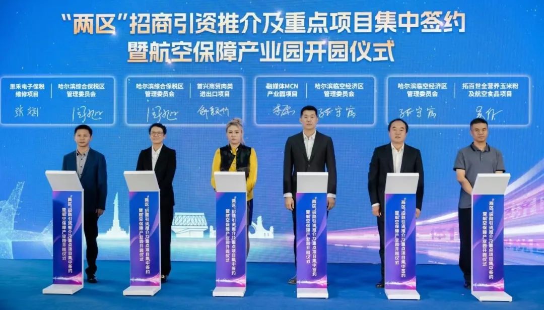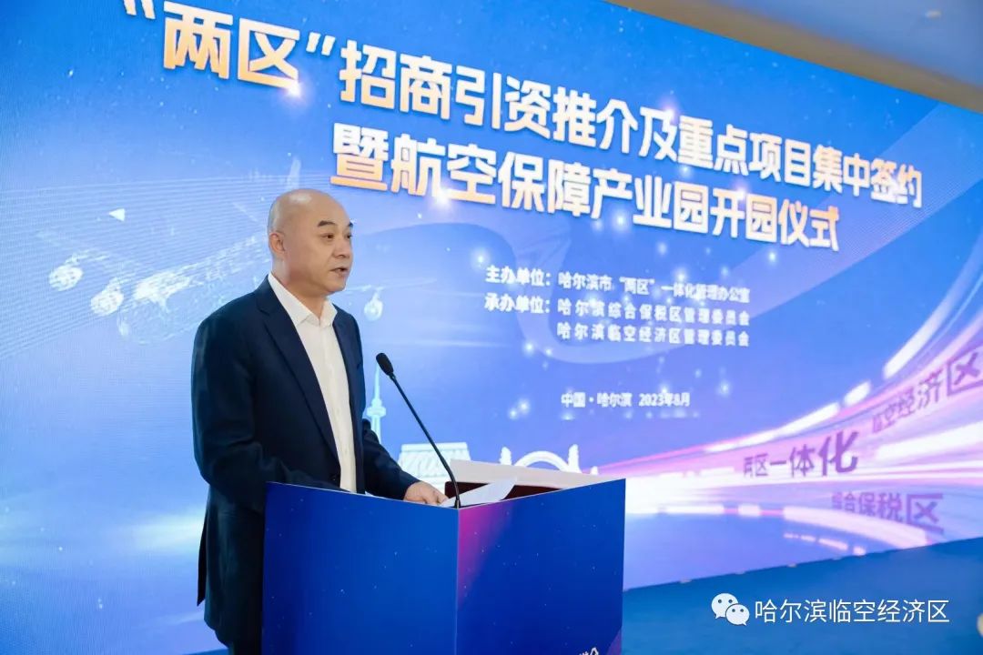 “兩區(qū)”管委會領(lǐng)導分別對哈爾濱綜合保稅區(qū)與哈爾濱臨空經(jīng)濟區(qū)重點園區(qū)、營商環(huán)境、產(chǎn)業(yè)政策等特色優(yōu)勢作招商推介,誠邀五湖四海的客商朋友來“兩區(qū)”投資興業(yè)、共商發(fā)展,吸引和促進優(yōu)質(zhì)資源和高端要素匯聚“兩區(qū)”。哈爾濱臨空經(jīng)濟區(qū)航空保障產(chǎn)業(yè)園在全體來賓的見證下正式啟動,該園總建筑面積12萬平方米,總投資5.6億元,重點發(fā)展航空總部經(jīng)濟、航空制造產(chǎn)業(yè)、航空物流產(chǎn)業(yè)、臨空制造產(chǎn)業(yè)以及航空服務、航空食品等產(chǎn)業(yè),致力打造為哈爾濱臨空經(jīng)濟區(qū)發(fā)展現(xiàn)代制造業(yè)的新名片,成為國內(nèi)知名的航空保障產(chǎn)業(yè)集群。