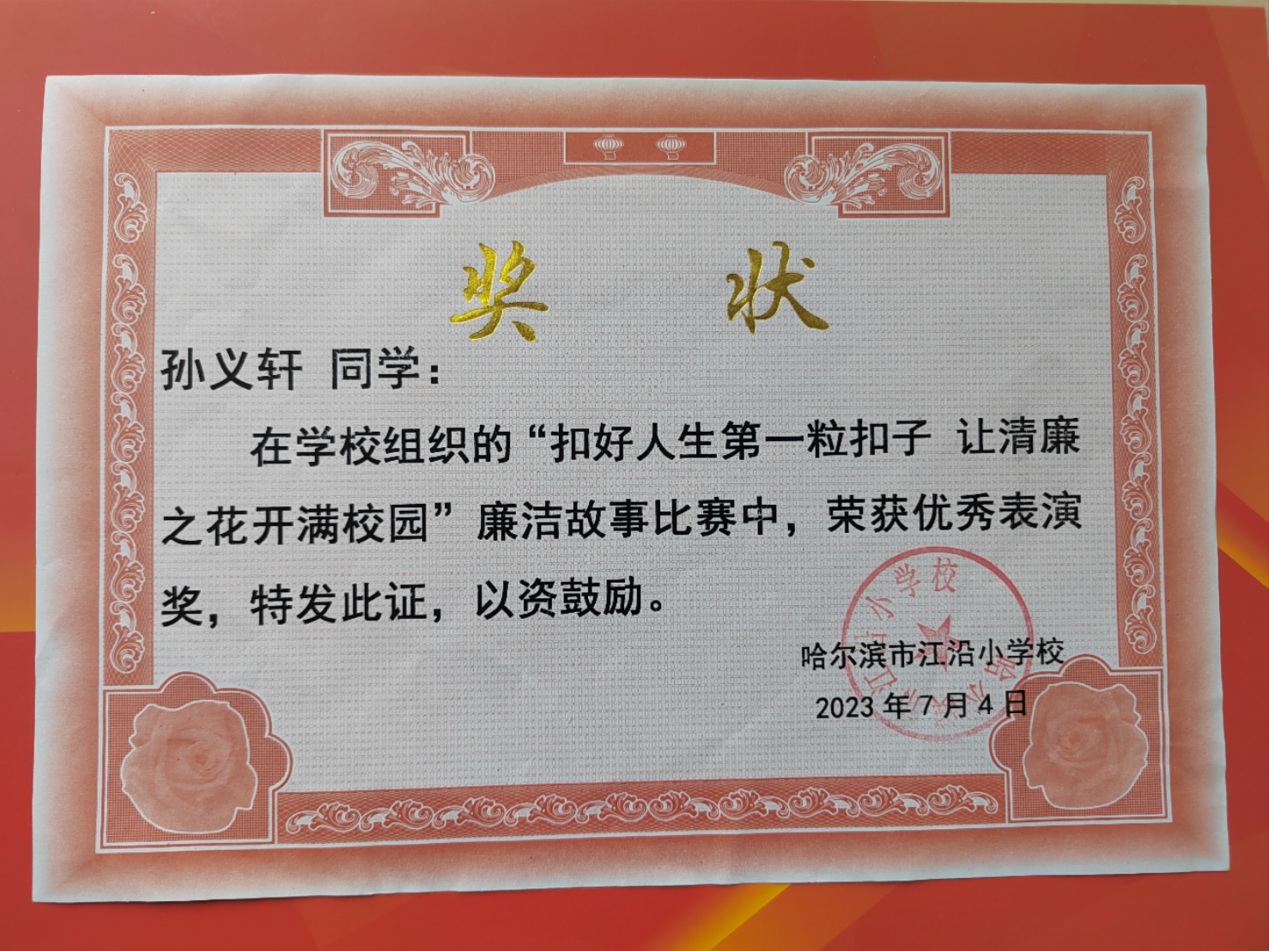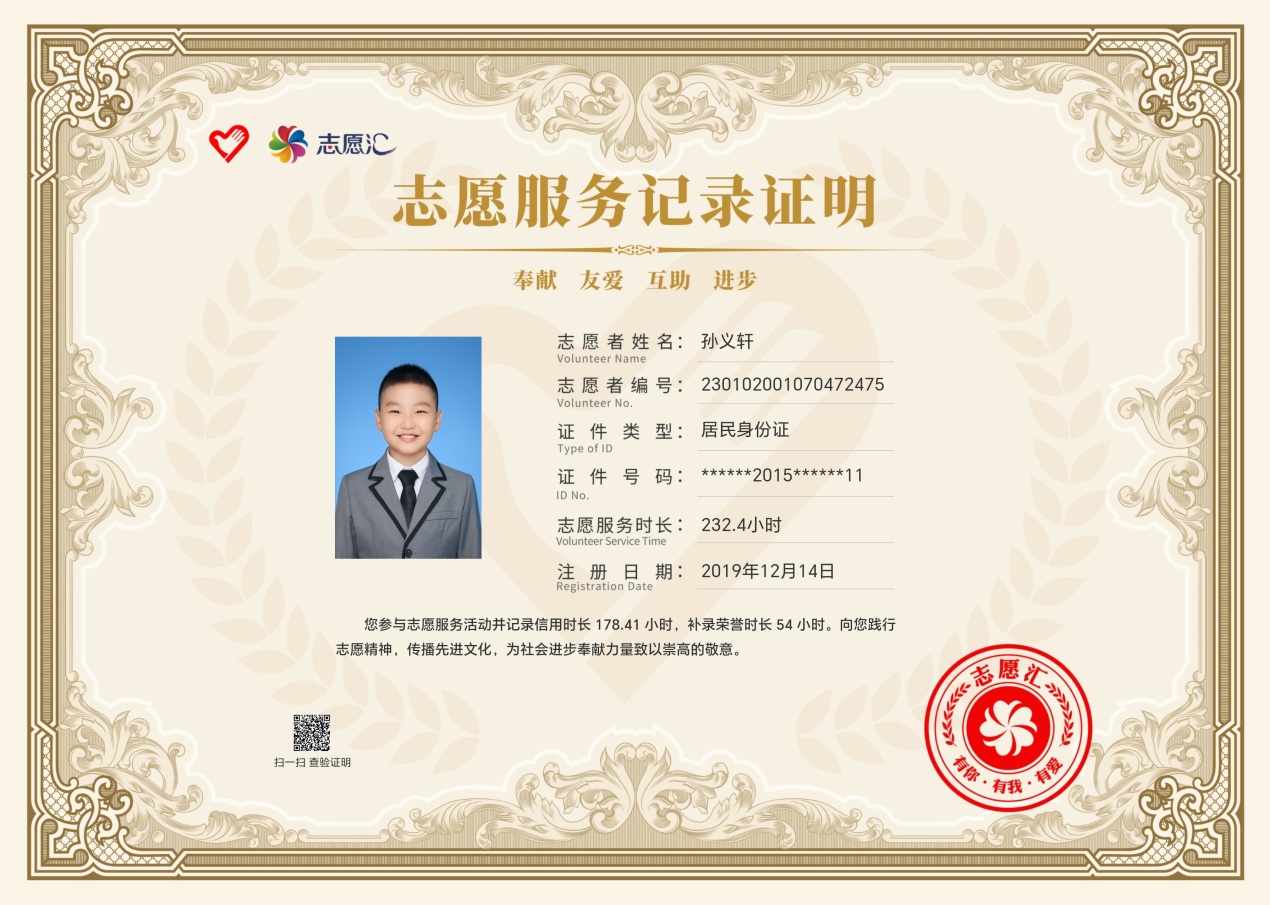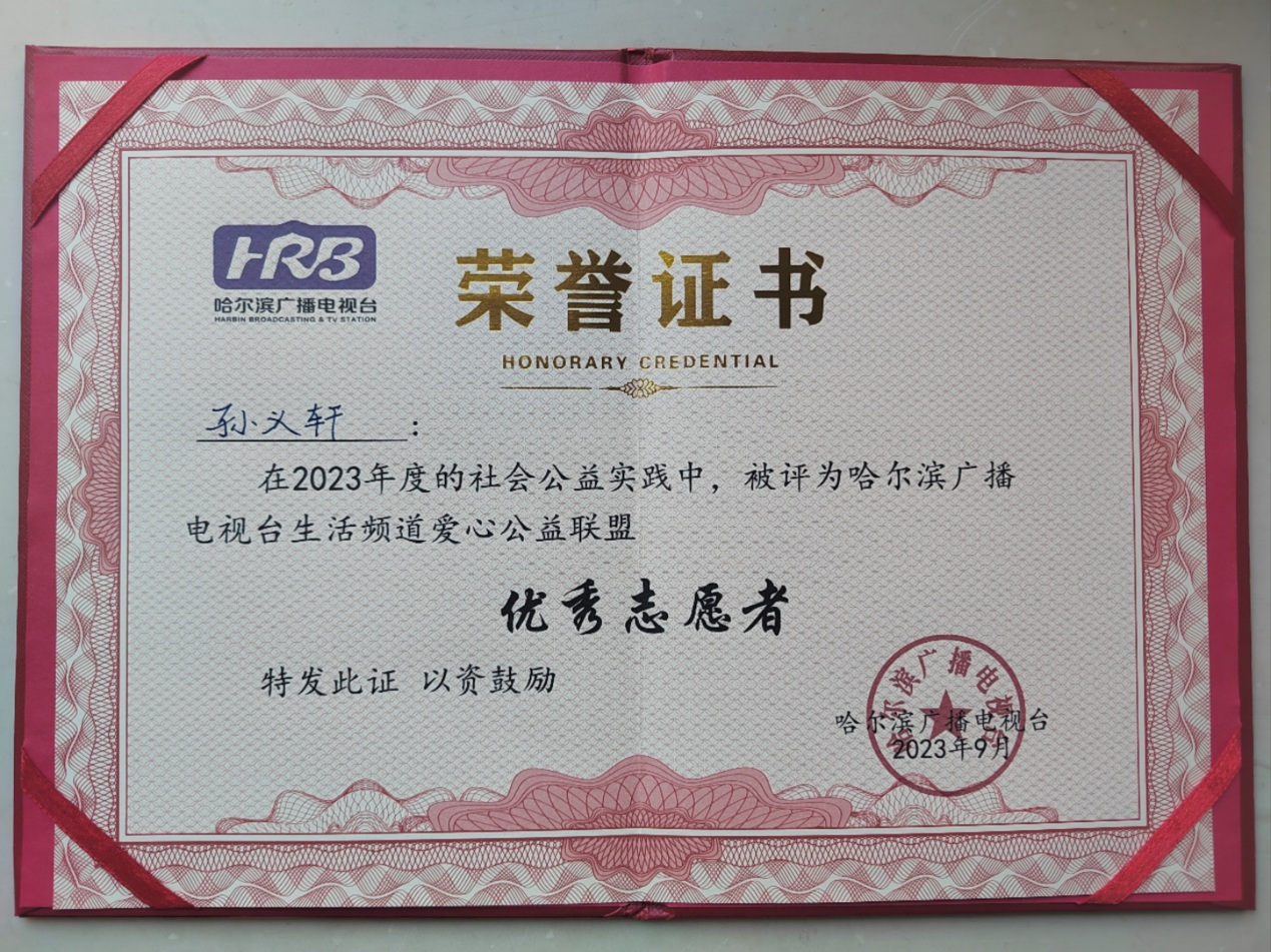 黑龍江經(jīng)濟(jì)網(wǎng)訊(楊東生)從2019年12月14日起累計(jì)參加志愿服務(wù)178小時(shí),學(xué)校“扣好人生第一??圩印眱?yōu)秀表演獎(jiǎng)獲得者,哈爾濱廣播電視臺(tái)生活頻道愛(ài)心公益聯(lián)盟優(yōu)秀志愿者,黑龍江省青少年發(fā)展基金會(huì)“我與小樹(shù)共成長(zhǎng)”參與者……他就是來(lái)自哈爾濱市江沿小學(xué)三年一班的孫義軒同學(xué)。