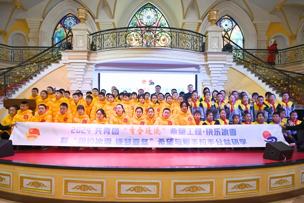 “希望與愛手拉手,相約冰雪逐夢亞冬。哈爾濱,我們來啦!”40名雙鴨山“小黃鴨”是來自雙鴨山地區(qū)的留守兒童、礦工和武警子女、低保戶困境家庭學(xué)生以及少先隊紅領(lǐng)巾宣講員。開營儀式后,雙鴨山“小黃鴨”們與哈爾濱新朋友,攜手暢游伏爾加莊園。并將在今后的5天中,體驗哈爾濱工程大學(xué)校園生活,參觀游玩哈爾濱工程大學(xué)哈軍工紀(jì)念館、北大荒博物館、龍塔、侵華日軍第七三一部隊罪證陳列館、哈爾濱工業(yè)大學(xué)航天館、索菲亞教堂、太陽島雪博會,欣賞融創(chuàng)冰雪秀等精彩表演,感受“希望工程·快樂冰雪”的魅力。白色的雪覆蓋著黑土地,萌生的是綠色的希望。黑龍江省立足冰雪資源稟賦,“希望工程·快樂冰雪”公益項目于2013年在省內(nèi)希望小學(xué)、鄉(xiāng)村小學(xué)內(nèi)實施開展,黑龍江籍冬奧冠軍楊揚(yáng)、張會、武大靖等先后助力?!跋Mこ獭た鞓繁表椖抠Y助鄉(xiāng)村學(xué)校澆筑冰場,為龍江學(xué)子捐贈愛心冰刀,帶領(lǐng)留守兒童赴冰雪大世界、太陽島雪博會等地開展形式多樣的賞冰樂雪活動。充分發(fā)揮黑龍江省冰雪資源優(yōu)勢,不斷鞏固和擴(kuò)大“帶動三億人參與冰雪運(yùn)動”的工作成果,滿足青少年多樣化的體育文化需求,為進(jìn)一步推廣普及群眾性冰雪運(yùn)動助力。值此亞冬會有利契機(jī),希望工程發(fā)起組織“相約冰雪逐夢亞冬”希望與愛手拉手公益研學(xué)活動,是貫徹落實習(xí)近平總書記寄語希望工程重要精神的生動實踐,通過公益研學(xué),讓城市青少年與鄉(xiāng)村青少年手拉手、心連心,共同開拓視野,參與社會實踐,在研學(xué)中收獲知識、友誼,也收獲了希望與愛。