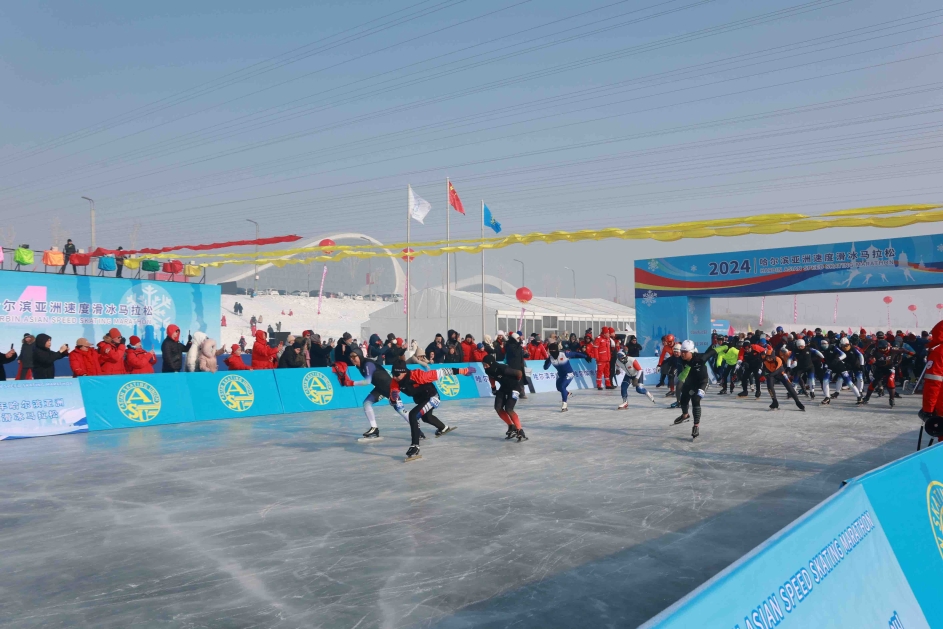 27日,2024年哈爾濱亞洲速度滑冰馬拉松在位于哈爾濱新區(qū)的亞洲最大戶外冰上運動中心隆重舉行。