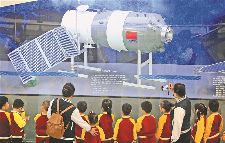 4月24日是第九個(gè)“中國航天日”。哈爾濱工業(yè)大學(xué)航天館里,前來參觀的群眾絡(luò)繹不絕。哈工大附中的幾十位同學(xué)興致勃勃地參觀了室外航天主題文化園,在長征一號(hào)運(yùn)載火箭、東風(fēng)二號(hào)地對(duì)地彈道導(dǎo)彈、資源號(hào)返回艙等大型實(shí)物展品前長久駐足觀看。在航天館內(nèi),他們還認(rèn)真聆聽了多位教授的航天知識(shí)講座,不斷為精彩的內(nèi)容鼓掌。