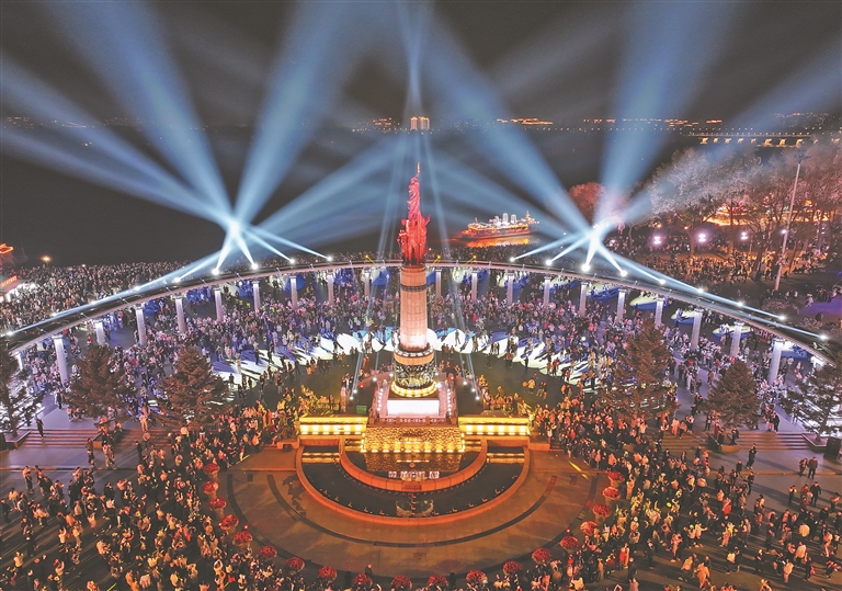1日晚,哈爾濱松花江光影秀在防洪紀(jì)念塔上演,驚艷全城,霸屏了哈爾濱人的朋友圈。據(jù)悉,1日至5日,光影秀演出時間為每天19時至22時30分,每半小時一次,每次6分鐘。5日以后,每天20時、21時、22時進行光影秀表演。(本報記者 張澍攝)