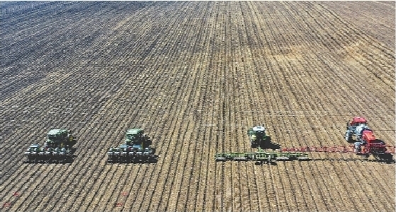 近日,在尖山農(nóng)場(chǎng)第一管理區(qū)北14號(hào)大豆地,4臺(tái)大型機(jī)車整裝待發(fā),充分利用晴好天氣展開播種作業(yè),標(biāo)志著尖山農(nóng)場(chǎng)播種工作全面展開。