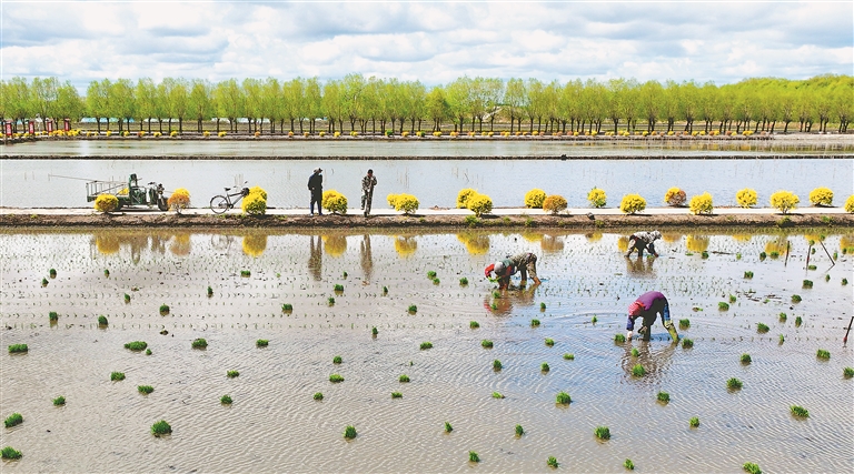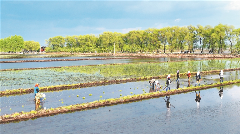 立夏過后,黑土地正式迎來水稻移栽好時節(jié),一排排秧苗整齊地挺立在田間,為稻田鋪上了“新綠”。在綏化市北林區(qū)國家級水田示范區(qū)國家級區(qū)域性良種繁育基地,這里正采用人工插秧的方式,繁育寒地香米品種。今年,北林區(qū)水稻預計種植面積108萬畝,寒地香米系列品種覆蓋95%以上。